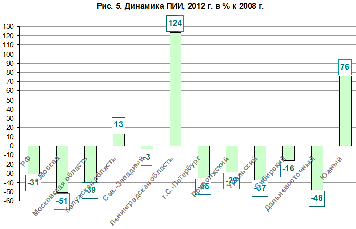 Рис. 5. Динамика ПИИ, 2012 г. в % к 2008 г. |