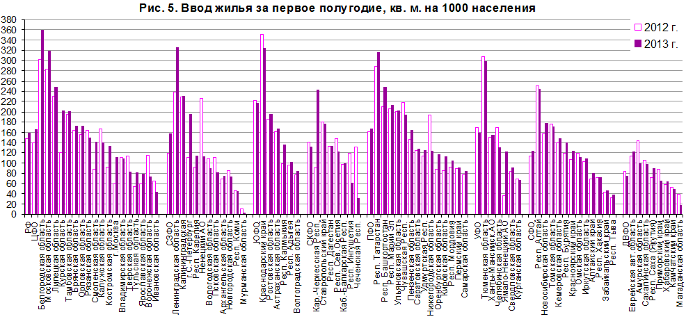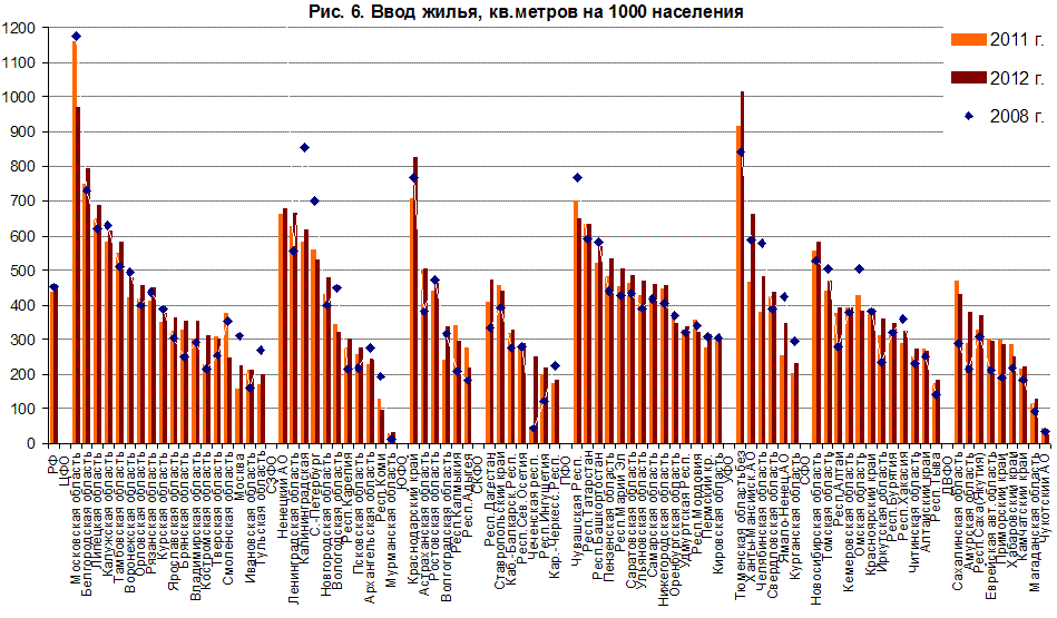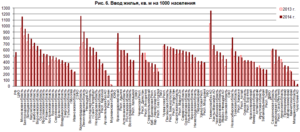 Рис. 6. Ввод жилья, кв.метров на 1000 населения |