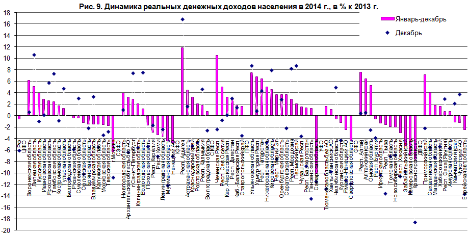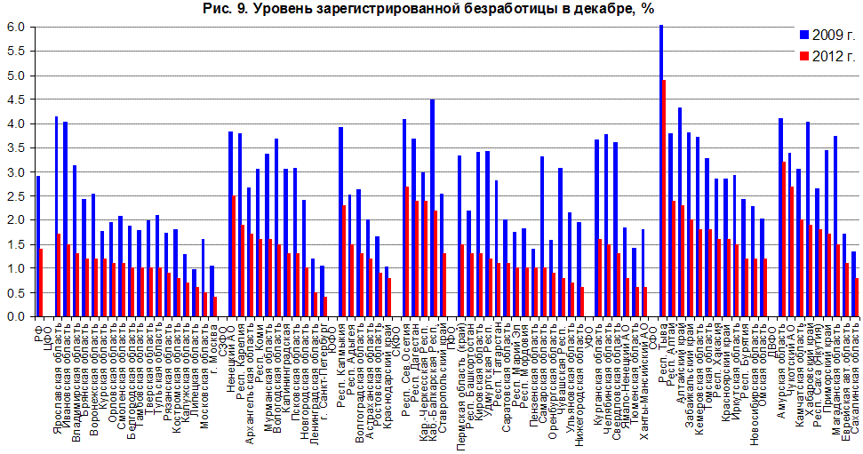 Рис. 9. Уровень зарегистрированной безработицы в декабре, % |