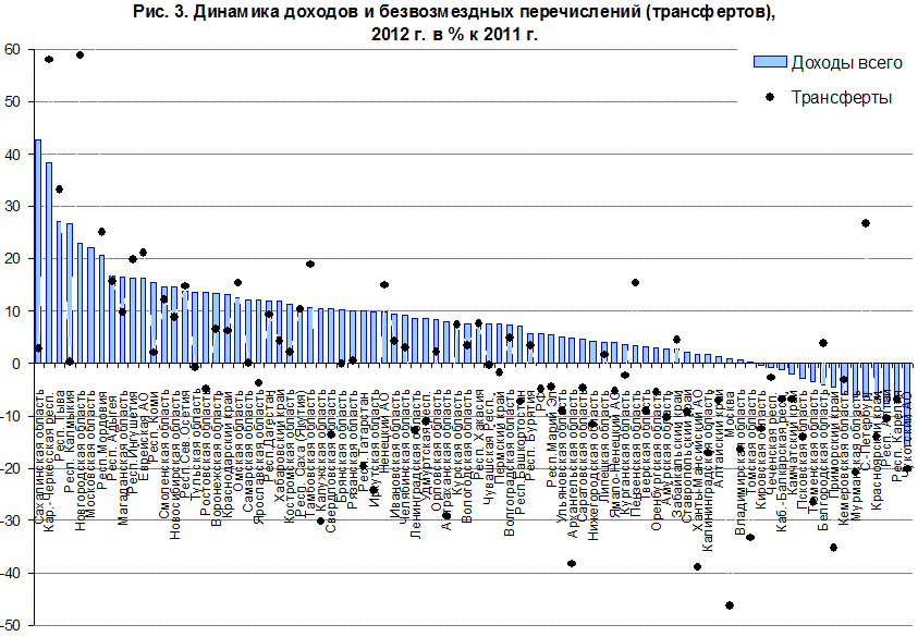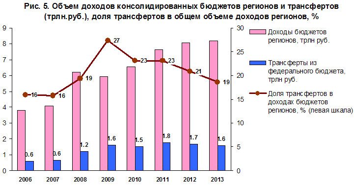 Завершившийся 2012 год, во-первых, показал, что "сбрасывать" на регионы социальные расходы уже невозможно, их бюджеты затрещали: в 8 раз вырос дефицит бюджетов, вновь растет долговая нагрузка. Те регионы, которые пытались инвестировать в экономику, чаще всего наказаны вдвойне, их долговая нагрузка максимальна. Во-вторых, рост расходов бюджетов на образование и здравоохранение не обеспечил адекватного развития человеческого капитала, население не ощущает позитивных изменений, эффективность огромных социальных расходов невысока. В-третьих, бюджетные проблемы регионов по-прежнему разруливаются в "ручном режиме". Кому-то очень помогут, увеличив на 60% трансферты из федерального бюджета (Новгородская область) или простив долги (Татарстан), но большинство обивает пороги высоких кабинетов без особых результатов. Прозрачных "правил игры" в межбюджетных отношениях как не было, так и нет. Дефекты системы управления нарастают, а возможностей "залить" проблемы деньгами все меньше. Неадекватные межбюджетные отношения на фоне стагнации экономики вряд ли обеспечат устойчивое развитие российских регионов.