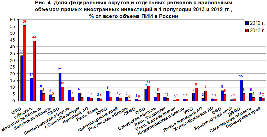 * в таблице показаны регионы с долей не менее 3% от всех ПИИ в первом полугодии 2012 г.