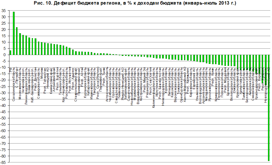 Рис. 7. Дефицит/профицит консолидированного бюджета региона, в % к доходам бюджета |