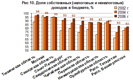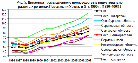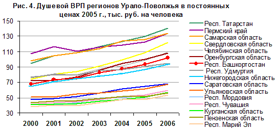 Интегральные индексы. По ИРЧП Башкортостан благодаря высокому значению душевого ВРП и более высокому долголетию населения продолжает входить в число лидеров, хотя и несколько ухудшил свою позицию (11 место в 2004 г., 6 — в 2003 г.). По кризисному индексу качества жизни его положение чуть хуже (12 место в 2005 г., 13 место в 2003 г.). Существенно хуже позиции республики по индексу инновативности (35 место) прежде всего за счет более низких показателей развития современных телекоммуникационных систем и более низкой доли крупногородского населения. В рейтинге демократичности Башкортостан занимает позицию в группе аутсайдеров, что отражает его принадлежность к числу регионов с «управляемым» голосованием и традиционно слабым развитием демократических институтов.