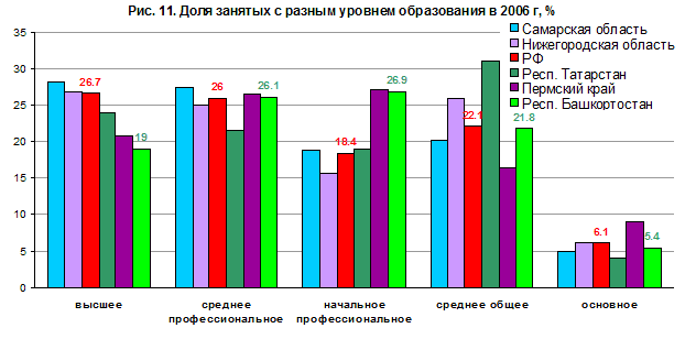 Здравоохранение, образование, ЖКХ. Высокая доля сельского населения приводит к отставанию социальной сферы. Обеспеченность базовыми услугами здравоохранения в республике ниже среднероссийской не очень существенно: и по численности населения на 1 больничную койку(95 и 107 в 2006 г.), и по числу врачей на 10 тыс. населения (42 и 49), и по мощности амбулаторно-поликлинических учреждений (238 и 256). За последние десять лет отставание даже несколько выросло. Немного превышает среднюю только обеспеченность средним медперсоналом (113 и 109).