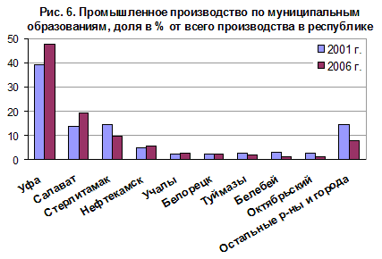 Значительно проигрывают Белорецк и Сибай, их основные предприятия теперь принадлежат крупным российским металлургическим компаниям (Мечел и УГМК), но это не главные активы для нынешних собственников, базирующихся за пределами республики. Новые хозяева не спешат с модернизацией предприятий и повышением заработной платы. Кроме того, на Башкирском медно-серном комбинате (Сибай) передел собственности еще окончательно не завершен. Стабильнее ситуация в Учалах, где градообразующее предприятие, добывающее и обогащающее медную руду, также принадлежит УГМК. Самые низкие заработки в небольших местных центрах преимущественно с пищевой промышленностью (Давлеканово, Баймак, Бирск), и в депрессивных Кумертау и Агидели.