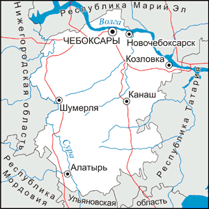 Расселение. Чувашия – самый маленький по территории и самый густозаселенный регион Поволжья (плотность населения – более 70 человек на кв. км). По численности населения (1,28 млн чел.) она в 1,5-1,8 раза больше ближайших соседей – республик Мордовия и Марий Эл. Территория современной Чувашии вошла в состав Московского государства в XVI в., в период завоевания и освоения поволжских земель русскими. Наиболее старые города – Чебоксары, Алатырь, Ядрин (XV–XVI вв.) – основывались как крепости для охраны восточных границ. Чебоксары были заметным торговым центром на Волге только в XVII-XVIII вв., а затем превратились в малый уездный город. Развитие Чувашии долгие годы оставалось преимущественно аграрным, советская индустриализация началась намного позже, чем в большинстве регионов Поволжья – только в 1960-1970-е годы. Строительство новых предприятий сопровождалось притоком в города республики русского населения из других регионов, а также ростом миграций из чувашского села.