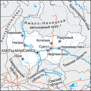 Расселение. Ханты-Мансийский автономный округ (ХМАО) был основан в 1930 г. как Остяко-Вогульский национальный округ и до конца 1960-х годов оставался слабоосвоенной частью Тюменской области, 40% территории которой занимают болота. Разработка огромных месторождений нефти дала начало новому этапу его развития, в 1977 г. округ получил статус автономного, хотя управление по-прежнему осуществлялось из Тюмени. В переходный период (1993 г.) округ становится полноправным субъектом РФ, оставаясь в то же время составной частью Тюменской области. Эта "матрешечная" структура, заложенная в Конституции РФ, до сих пор генерирует политические проблемы во взаимоотношениях округа и области.