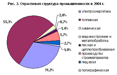 Рис. 2. Отраслевая структура промышленности в 2004 г.