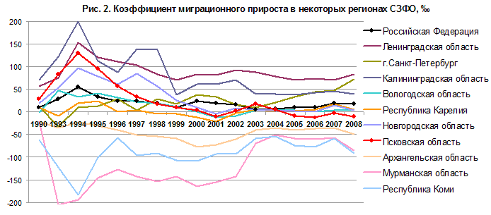 Таблица 1. Динамика численности населения Псковской области в 1989–2008 гг.