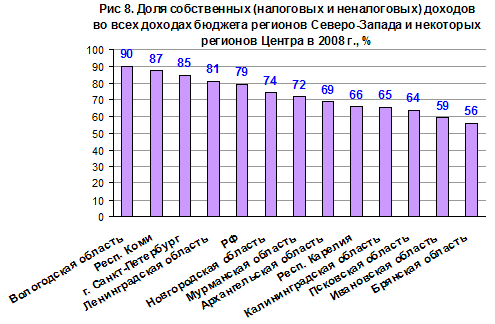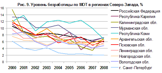 | | Рис. 9. Уровень безработицы по МОТ в регионах Северо-Запада, % |